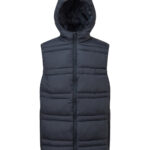 Reverse coil zip on centre front with signature zip pull. Quilted horizontal stitched wide and narrow baffles. Quilted hood with elasticate edge. Fully lined in Polyester. Elasticate armholes for a snugger fit. Internal zipped opening for embroidery access. Reverse coil zip side pockets. Internal zip pockets. Internal storm flap with chin guard. Product contains no branded neck label.* Removable Kimble or looped garment tags. Inner seam label holds important product information on one label with a second label containing brand information which can be cut-away.