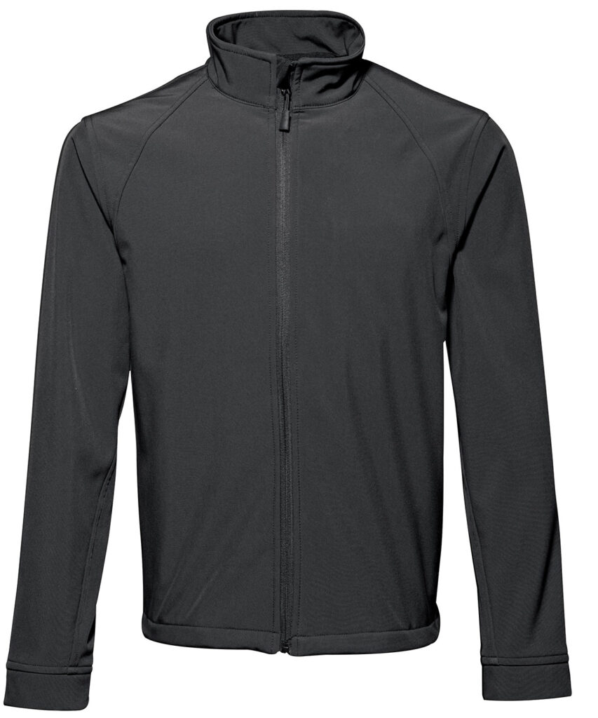 Reliable 3 layer bonded soft shell jacket. Zip through cadet collar with storm flap and chin guard. Sheds light wind and rain. Breathable. Interior smartphone friendly pocket. Storm cuffs. Shaped to fit. Inside zip closed pocket. Concealed inside zip for decoration access. Two front zippered pockets. Adjustable drawcord at hem. Windproof and water resistant. Easy re-label system. Product contains no branded neck label.* Removable Kimble or looped garment tags. Inner seam label holds important product information on one label with a second label containing brand information which can be cut-away.