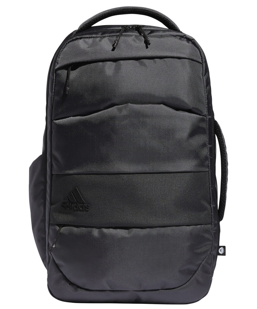Keep your golf gear organised and easy to transport. This adidas golf backpack is sized for day trips and made to complement your luggage on longer trips. Theres a dedicated, fleece-lined laptop sleeve plus plenty of accessory pockets inside and out for organising the small stuff. Side handles let you grab-and-go like a duffle, and a trolley strap secures the backpack to your roller bag for easy airport transfers. Made, in part, from recycled content generated from production waste, e.g. cutting scraps and post-consumer household waste, to avoid the larger environmental impact of producing virgin content.