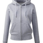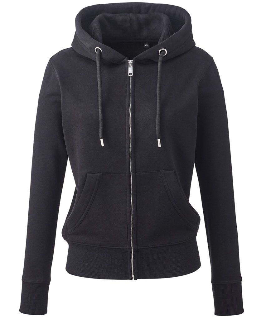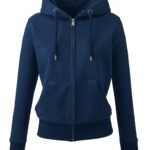At Anthem we pride ourselves and our styles on three main values: ethically sourced, high quality fabrics and ideal for the imprint market. All these characteristic can been found in our womens Anthem full-zip hoodie. This incredibly soft-feel style is created with organic cotton, with the addition of recycled polyester in our marl colours. Twin-needle detailing throughout with high quality finishes and a concealed zip make this style perfect for print.