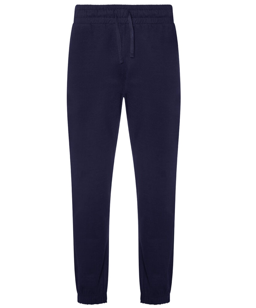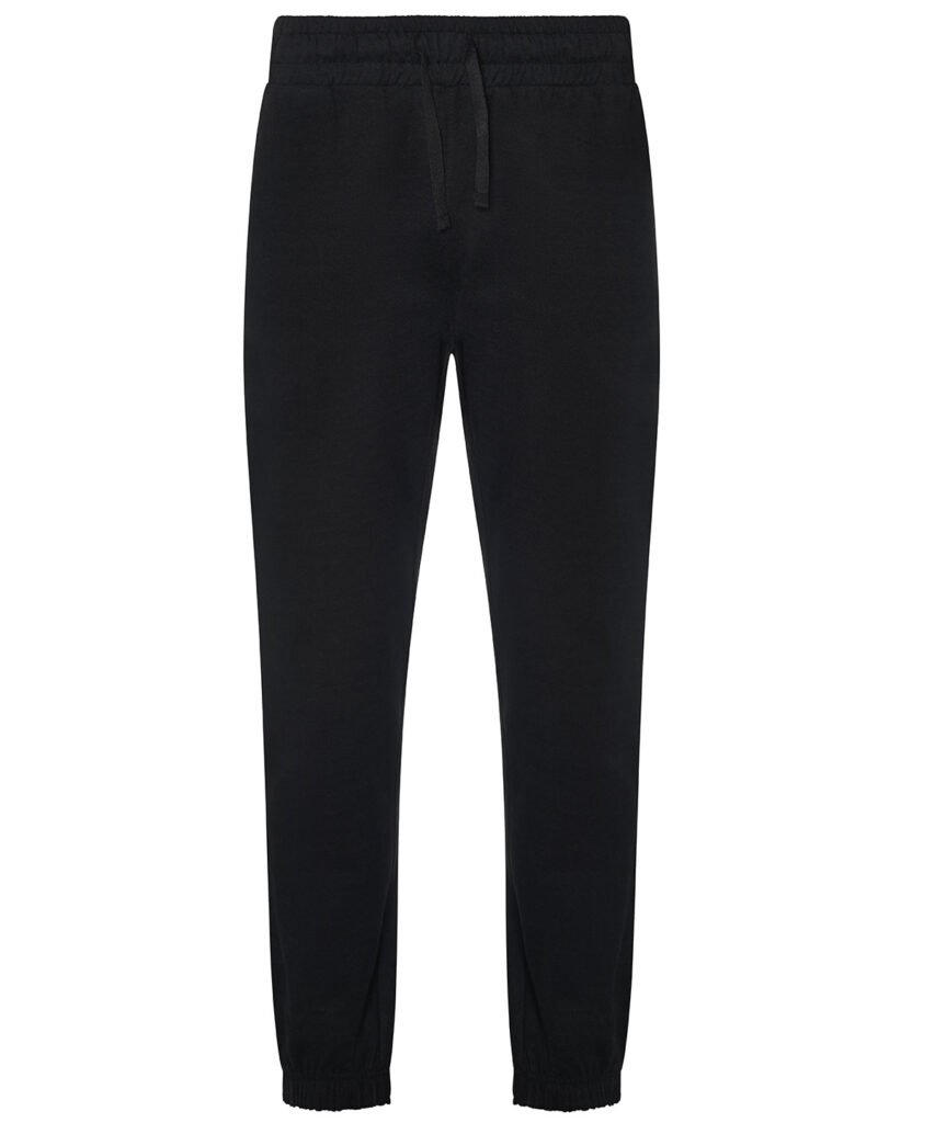 Relaxed unisex fit. 70% recycled cotton. Cuffed leg opening. Elasticated waist with DTM drawcords. Brushed inner fleece. Side pockets. Size tab only, for easy rebranding.
