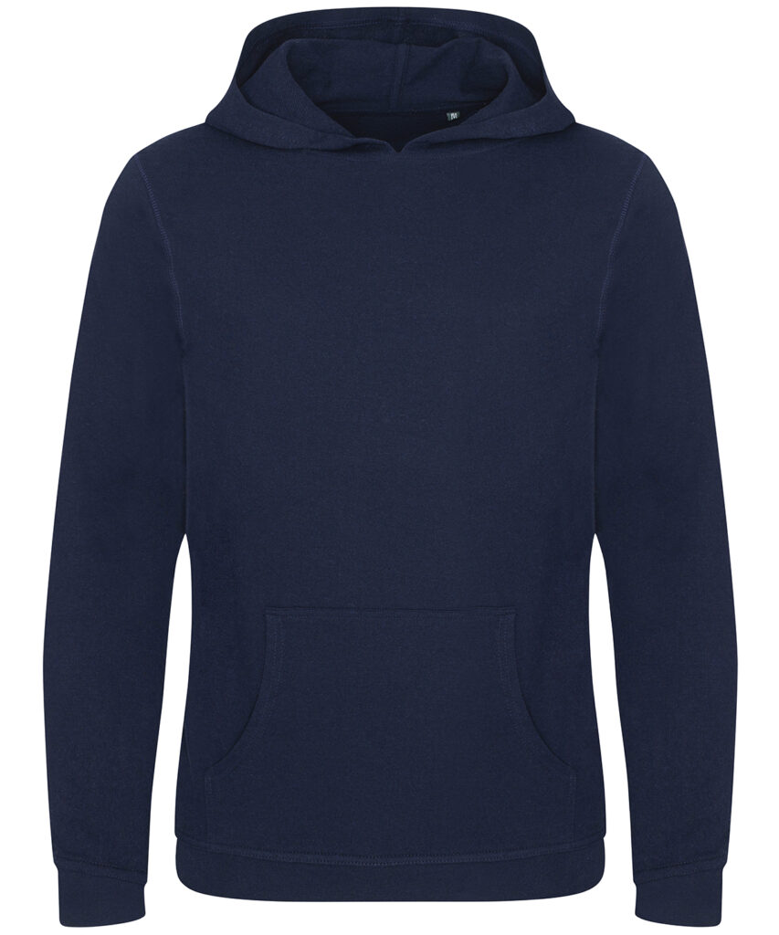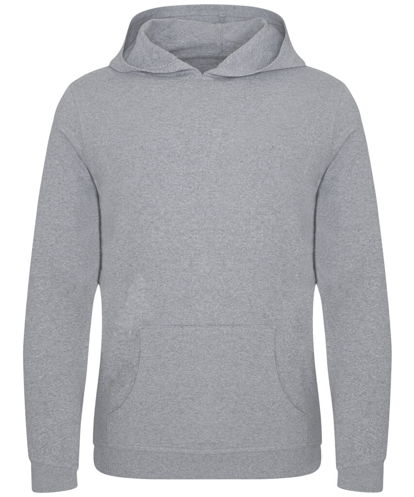 Long sleeve regenerated cotton hoody with French terry construction. Features include set-in sleeves, angled rib at cuffs, ribbed hem and kangaroo pocket.