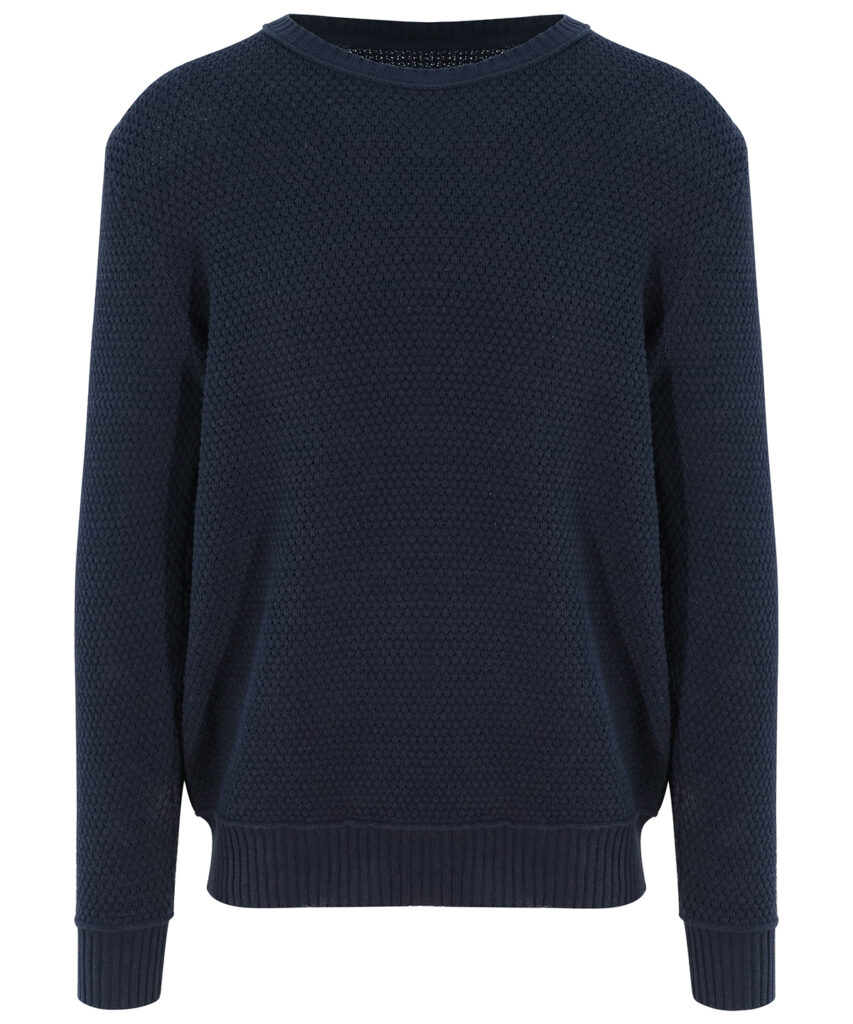 Working towards a more sustainable planet, the Taroko sweater is made from using 70% regenerated cotton waste and 30% recycled polyester. This stylish sweater features crew neck, ribbed cuffs and hem with a seed stitch for a truly unique layer. Waffle knit and fashion fit.