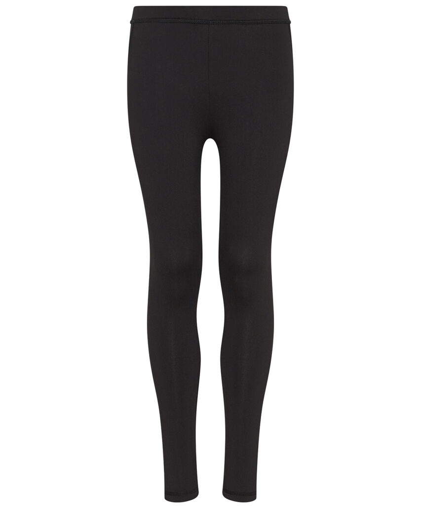 Full-length kid legging. Deep waistband and stretch fabric for comfort and ease of movment. Quick-drying and wicking.