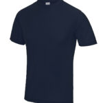 Self-fabric crew neck. Set in sleeve design. Half moon yoke. Self-fabric side panels. Enhanced SuperCool fabric with superior wicking properties and anti-bacterial finish. Self-fabric sapphire blue taped back neck. Twin needle stitching detail. Simple tear off label makes it perfect for rebranding. UPF 30+ UV protection.