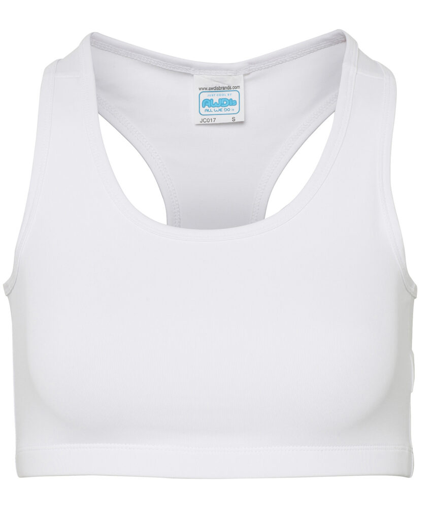 AWDis own CoolFit blended fabric containing elastane that provides stretch for comfort and a great fit. Racer back design. Scoop neckline. Pull on style. Elasticated under band for secure fit. Self-fabric binding around neckline and armholes for a clean finish. Simple tear off label makes it perfect for rebranding. UPF of 30+ protection.