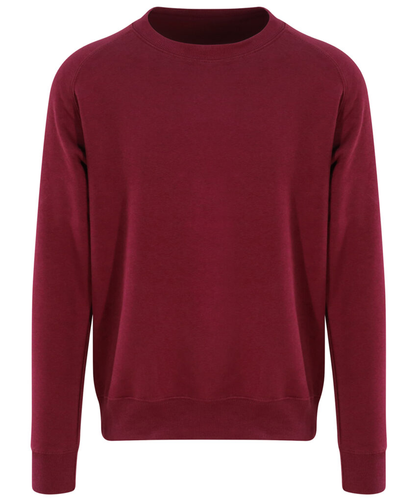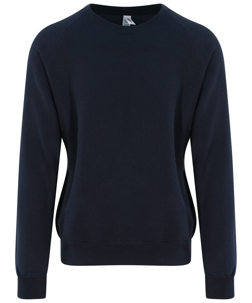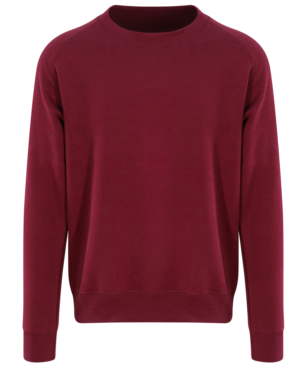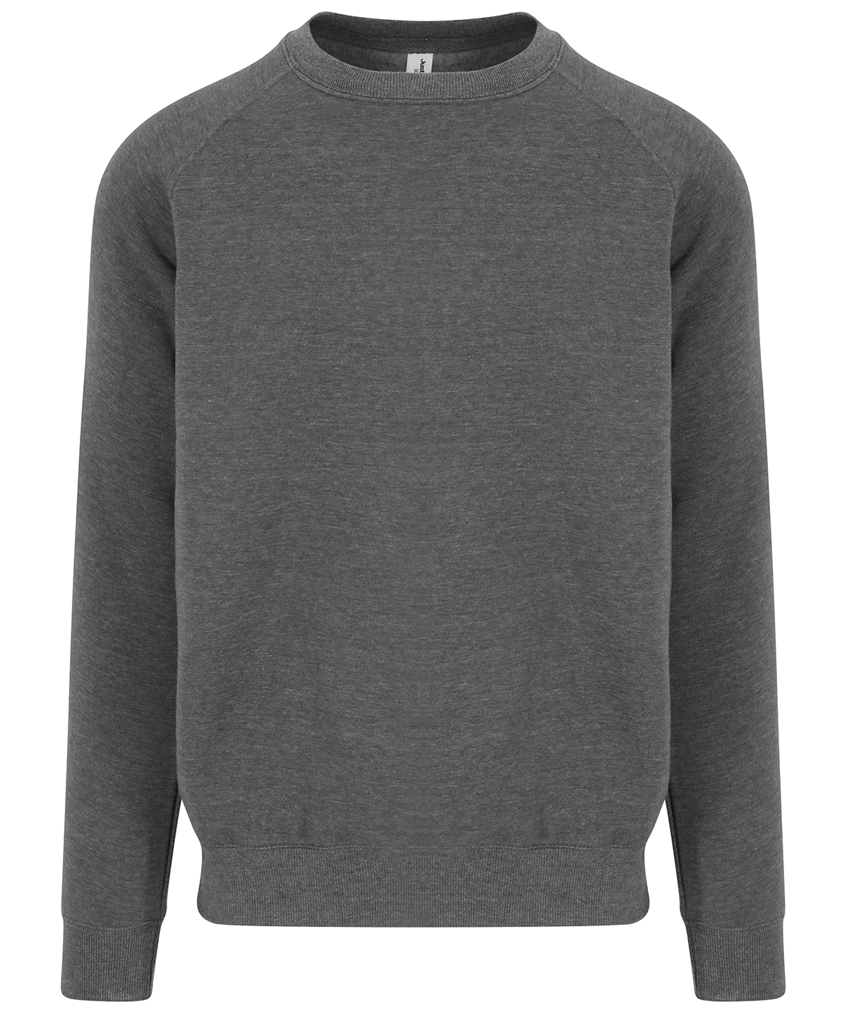 Heavyweight sweat. Twin-needle stitching detail. Raglan sleeves. 2 x 1 ribbed cuffs and hem. Soft cotton faced fabric creates ideal printing surface. Simple tear-out label makes it perfect for rebranding. Brushed inner fleece.