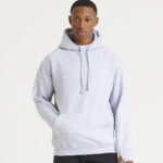 Heavyweight hoodie with twin needle stitching detailing and three panel double fabric hood with thumb holes in the cuffs. Flat lace drawcords and kangaroo pouch pocket and hidden phone pocket inside kangaroo pouch pocket with small opening for ear phone cord feed. Hidden ear phone loops with v-neck insert detail with hanging loop at back neck, locker patch and ribbed cuff and hem. Soft cotton faced fabric creates ideal printing surface. Simple tear out label makes it perfrect for rebranding. Brushed inner fleece.