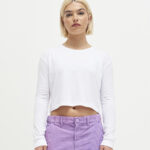 Easy-to-wear long sleeve cropped t-shirt, great for layering. Pair with jeans for an on-trend look. Soft to the touch, due to its fabric mix, and featuring a classic crew neckline. A wardrobe essential.