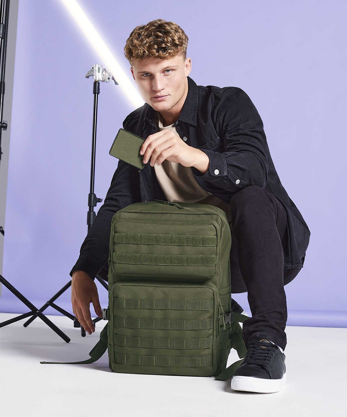 Designed for decoration. Full Rip-Strip reverse for any attachment. Compatible with all BagBase MOLLE styles. Reach certified.