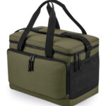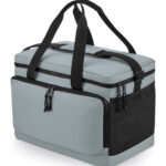 100% Recycled 600D polyester. PVC-free. PEVA lining BPA-free. Food-safe, fully insulated main compartment. Zipped main compartment. Zipped front pocket. Stretch mesh side pocket. Wipe-clean interior. Internal water bottle/ice block holders. Twin carry handles. Cord zip pulls with reflective detailing. Adjustable webbing shoulder strap. TearAway label for easy rebranding.