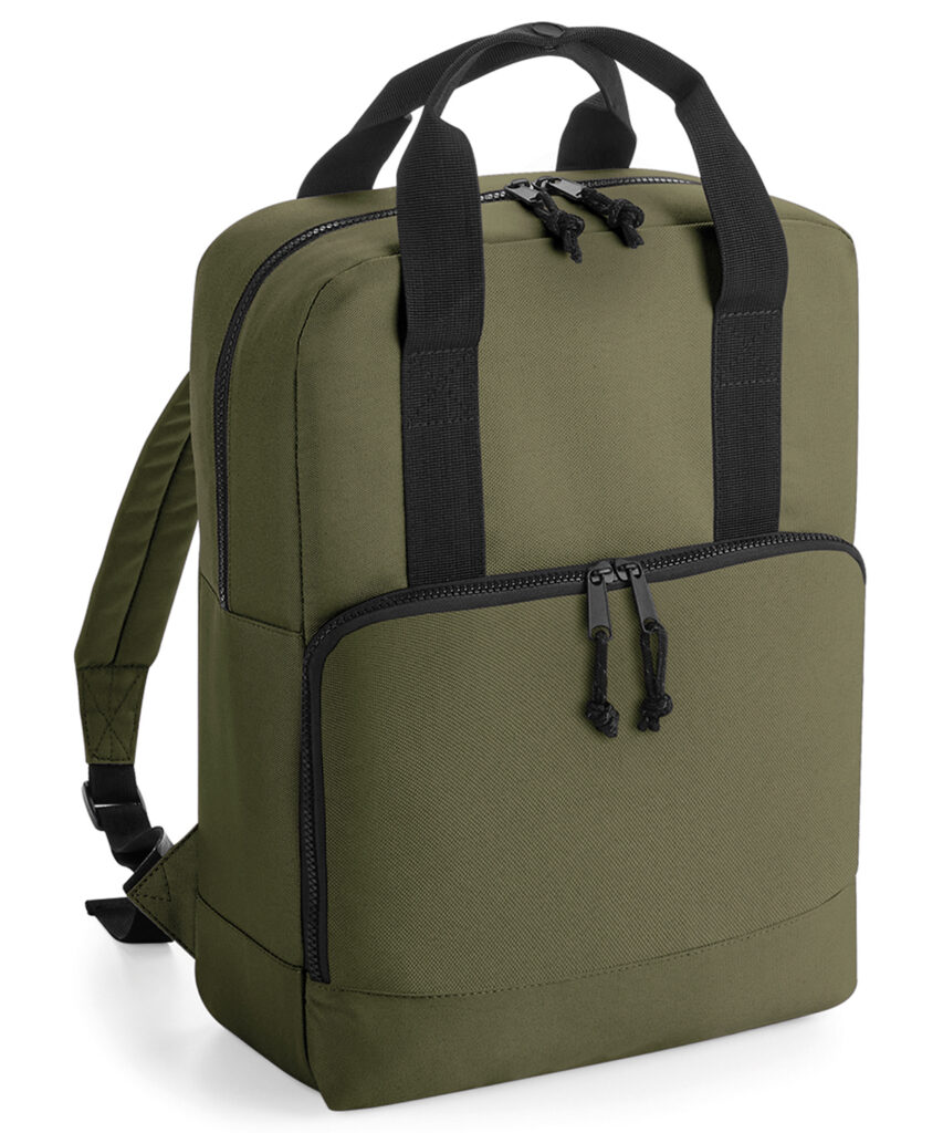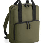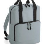 Make way for the new wave of cool bag, abandoning convention in favour of casual, contemporary style. This 100% recycled polyester backpack provides the perfect laid-back look for trips outdoors, days at the park or adventures on foot. Its insulated main compartment keeps snacks chilled and is fully lined with a handy PEVA wipe-clean interior. Padded, adjustable straps keep comfort in check, while twin carry handles and a zippered front pocket break the mould for a modern cool bag design.