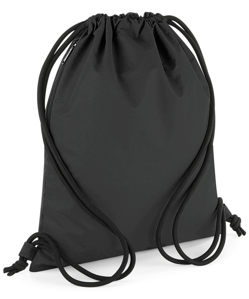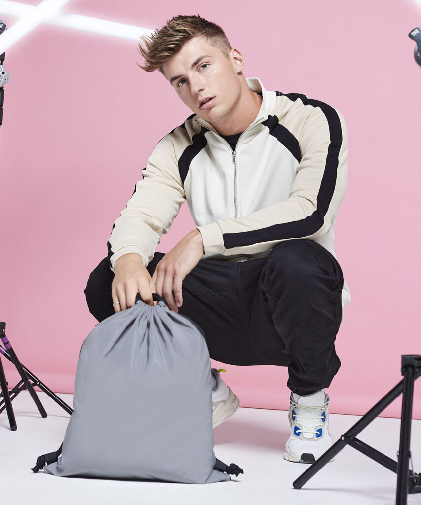 TearAway label for ease of rebranding. Lightweight yet durable. Reflective powder coating for enhanced visibility. self-fabric cord loops for ease of decoration. Zippered external stash pocket. Chunky drawcord closure. Reach certified.
