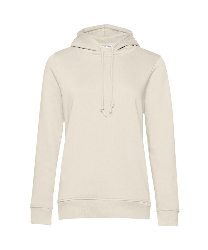 Trendy organic hooded sweatshirt with retail fashion oriented look and feel. Strong styling with great fitting and perfect length. Pockets placed in side seams to allow maximum front decoration surface area. Side seams ensure the best fit and a feminine silhouette. Identical colours (20) for men and women for a perfect duo. Visible “Hi! I’m Organic” neck tab to highlight the organic value of the garment. Easy branding solution – B&C No label solution. Inside single Jersey halfmoon in back to allow easy branding personalisation. Retail like features: single Jersey lined hood, qualitative herringbone neck tape and fashionable drawcord.