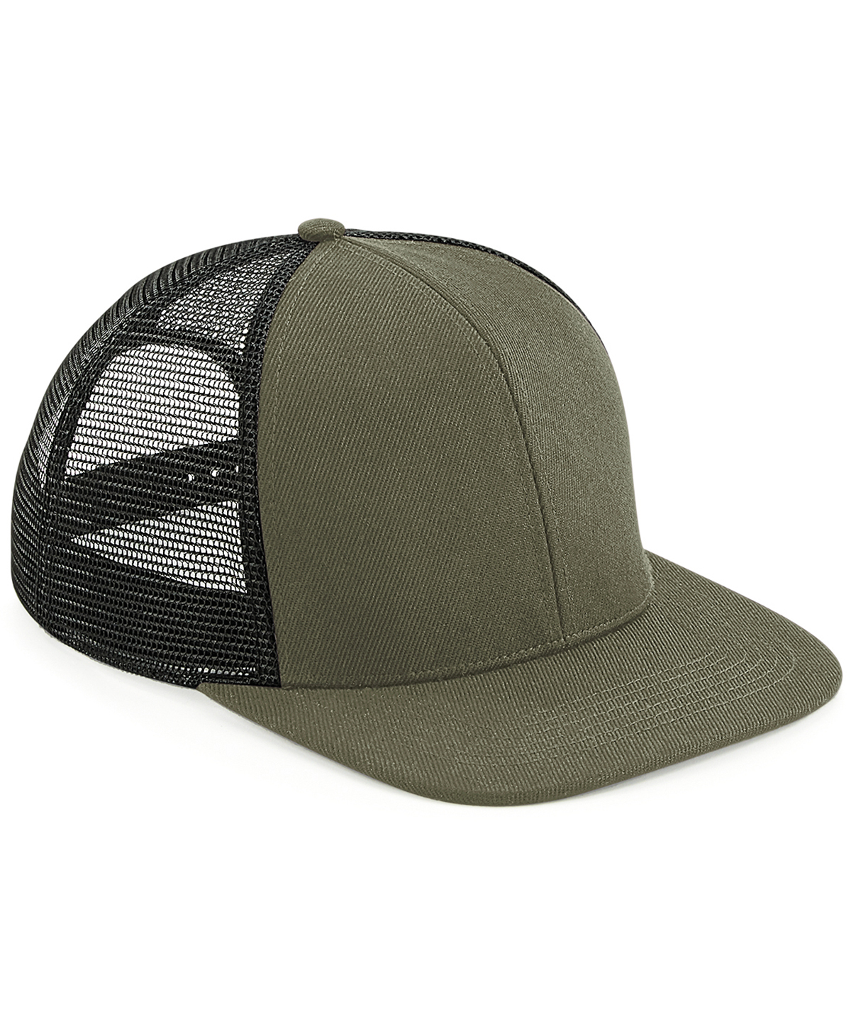 100% Polyester twill front panel and peak. Mesh rear panels: 100% Polyester