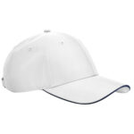 Boost team spirit with this classic six-panel cap. A cotton sweatband ensures complete comfort, while a contrasting colour sandwich peak creates a trendy collegiate finish. This is the perfect piece for personal sports styling or athleisurewear, as well as a great gifting opportunity for sports events, contests and fan clubs. Available in a wide range of colourways, theres sure to be something to complement any kit and, containing 100% recycled polyester, its another step towards a more sustainable era.?