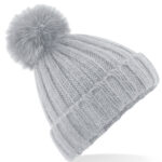 TearAway label for ease of rebranding. Luxury self-coloured faux fur pom pom. Removable pom pom for ease of washing. Unisex styling. Cuffed design for optimal decoration. Sumptuous heavy ribbed knit. BSCI certified. Reach certified.