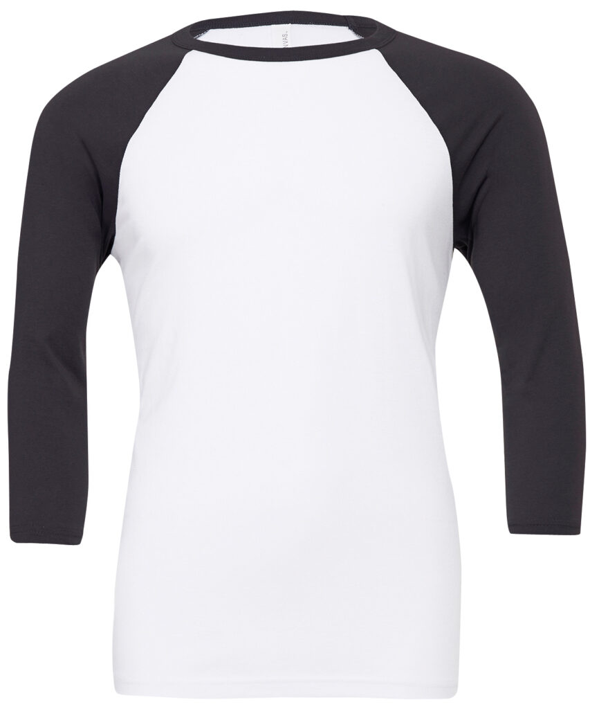 The classic baseball tee with raglan 3/4 sleeves takes on a fresh update with a super soft blends of combed and ringspun cotton, modern fit, 3/4 contrast raglan sleeves and crew neck with contrast trim. This 3/4 sleeve blank baseball tee has a tight-knit surface and is great for printing on. This tee comes in a variety of cool colour combinations.