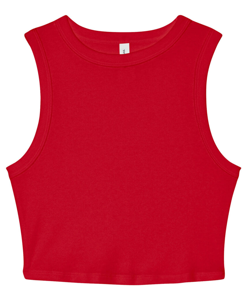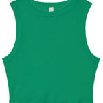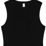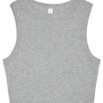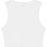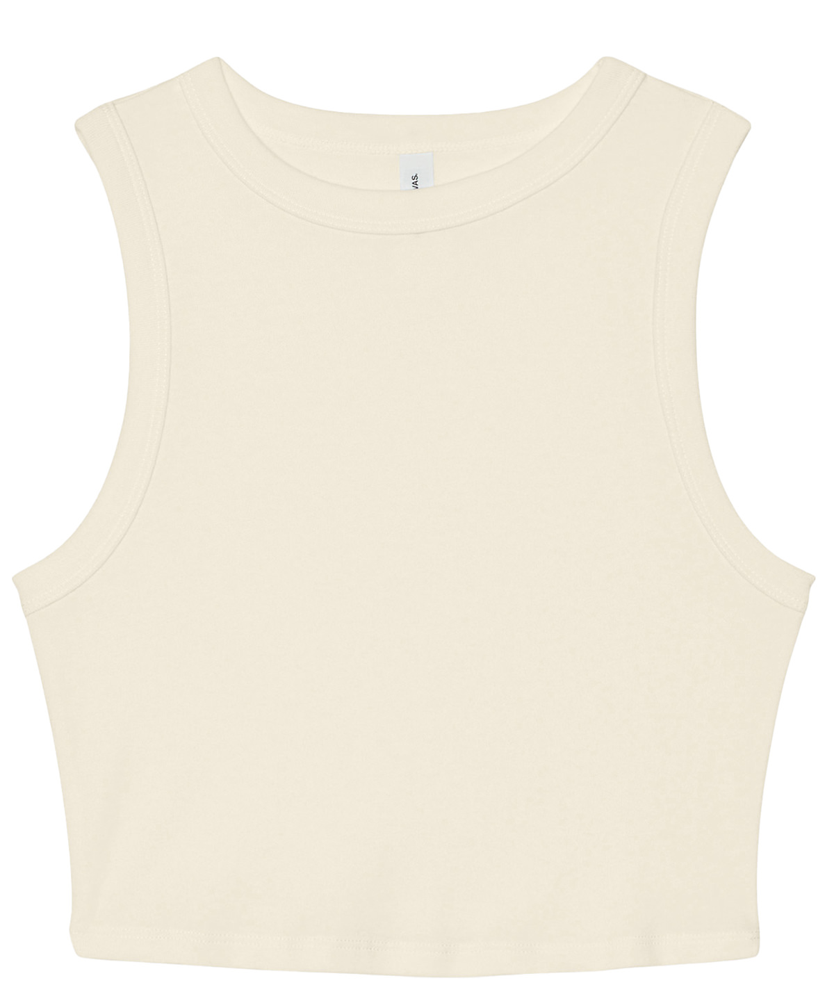 Deep armholes. Cropped. 1×1 micro rib. Fitted. Stretch fit. Pre-shrunk. Side-seamed.