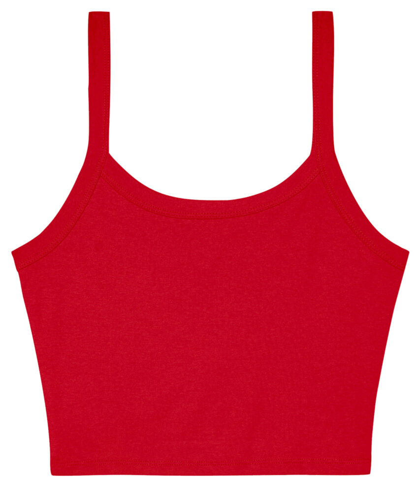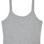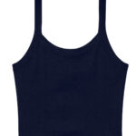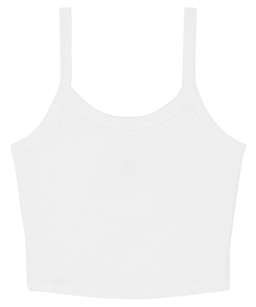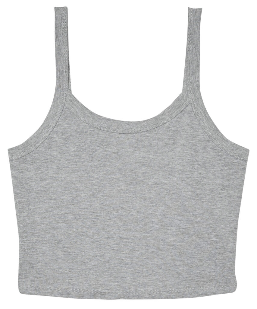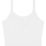 Thick spaghetti straps. Mid-length. 1×1 micro rib. Fitted. Stretch fit. Pre-shrunk. Side-seamed.
