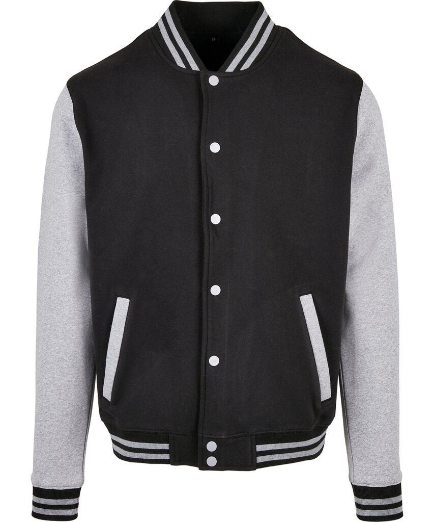 Sporty jacket for men in college style. Full-length button panel, wide ribbed hem and sleeve cuffs and side welt pockets. The cotton mix of the jacket is perfect for refinement and can easily be customised. This item is manufactured in a FAMA Certified factory. FAMA stands for Facility and Merchandise Authorisation and is a high standard production certificate. .