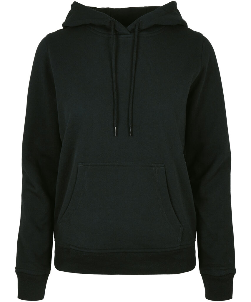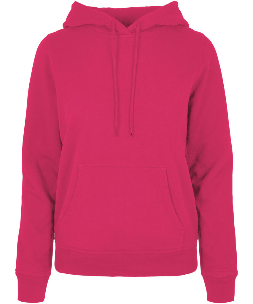 Classic cut and comfortable basic hooded sweatshirt for women. Hood, kangaroo pocket and wide cuffs on sleeves and hem provide the necessary comfort. The hooded sweatshirt is perfectly suited to be refined and can be easily customised. This item is manufactured in a FAMA Certified factory. FAMA stands for Facility and Merchandise Authorisation and is a high standard production certificate. .