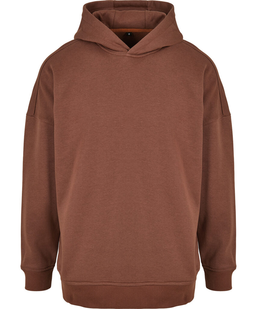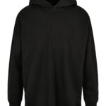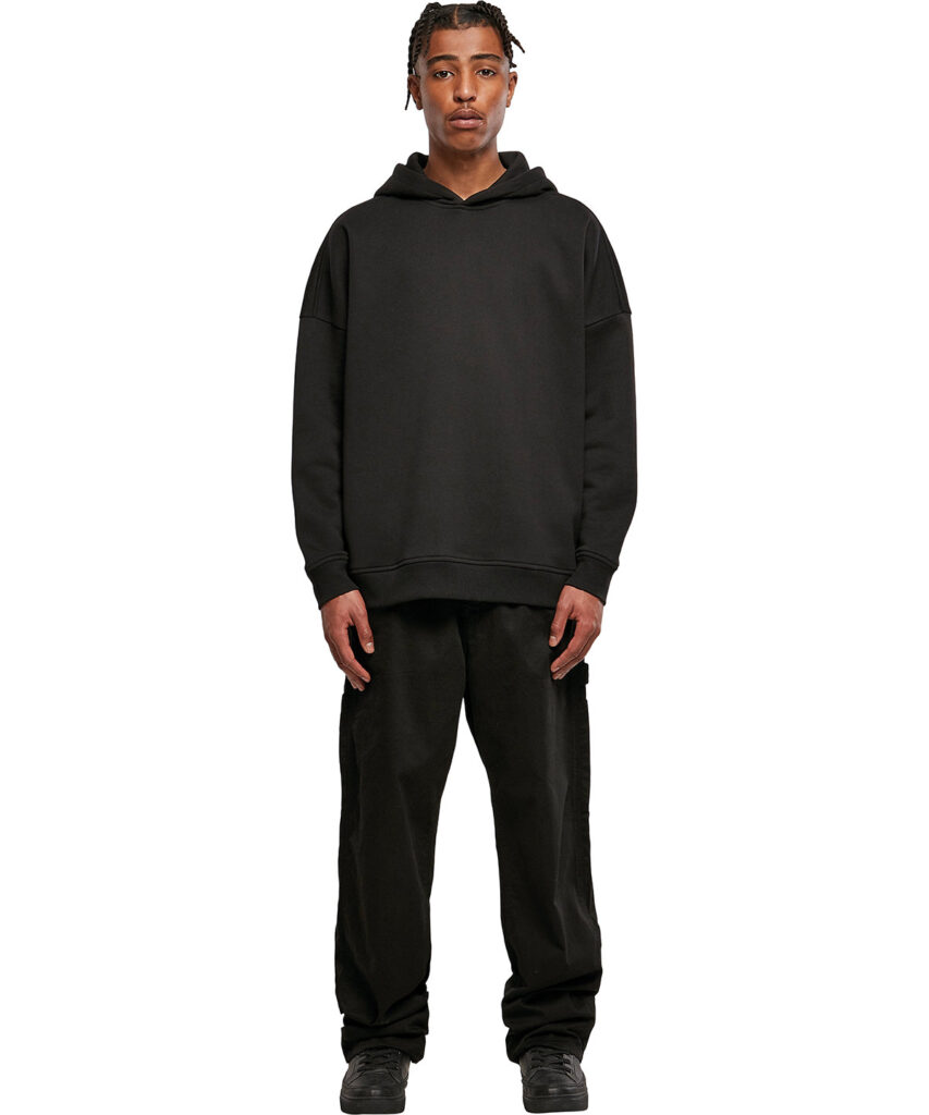 A relaxed mens hoodie in a trendy oversized cut and with dropped shoulders, its hood is crossed at the centre front, creating a distinctive effect. It also features wide, classic rib cuffs and hem, and can be personalised with printing or embroidery. The material is a comfy mix of cotton and polyester.