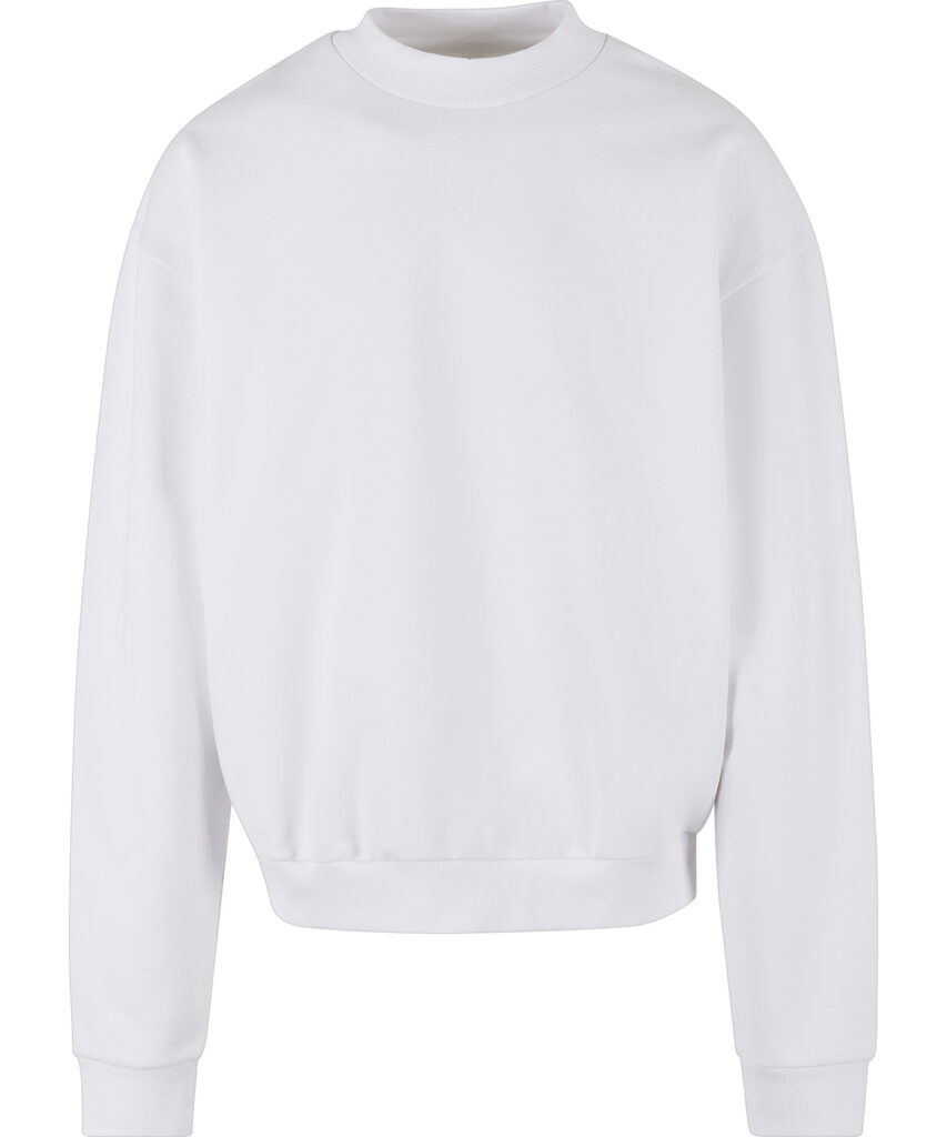 A basic all-rounder, made from heavy cotton, this mens long sleeve sweatshirt presents a wide, urban fit with dropped shoulders. Styled with a wide ribbed collar and rib cuffs on the sleeves and hem, it can further be refined with screen or flex printing.