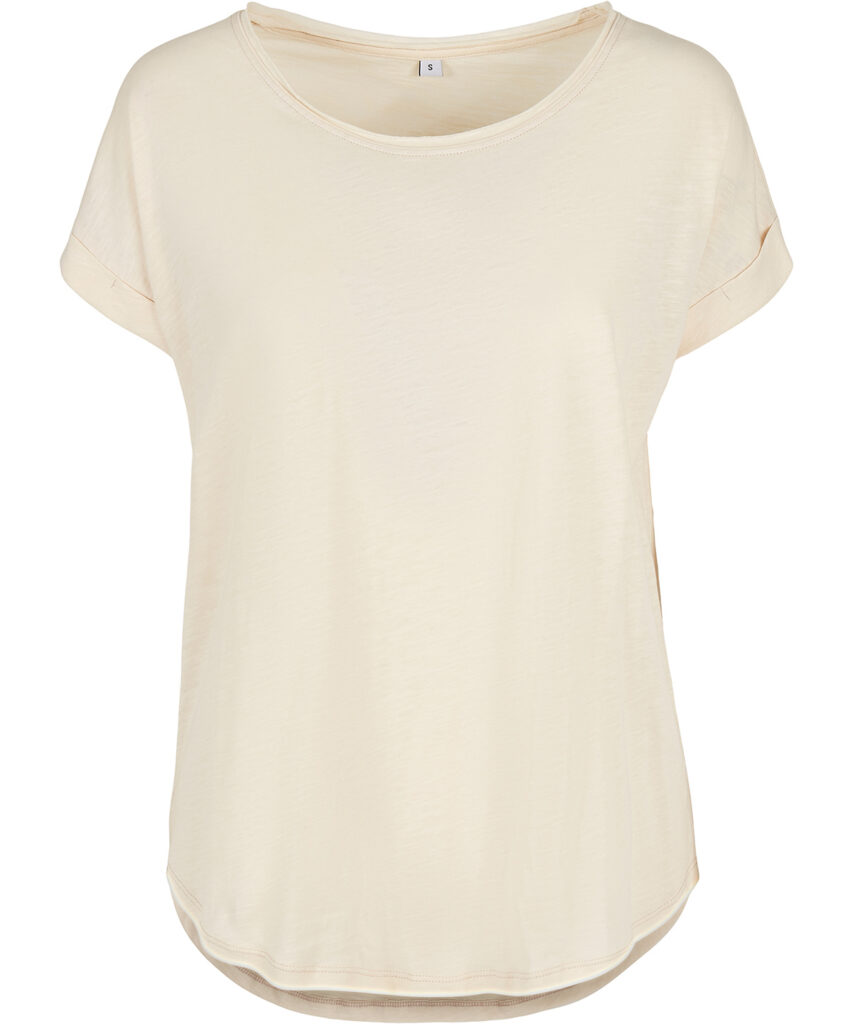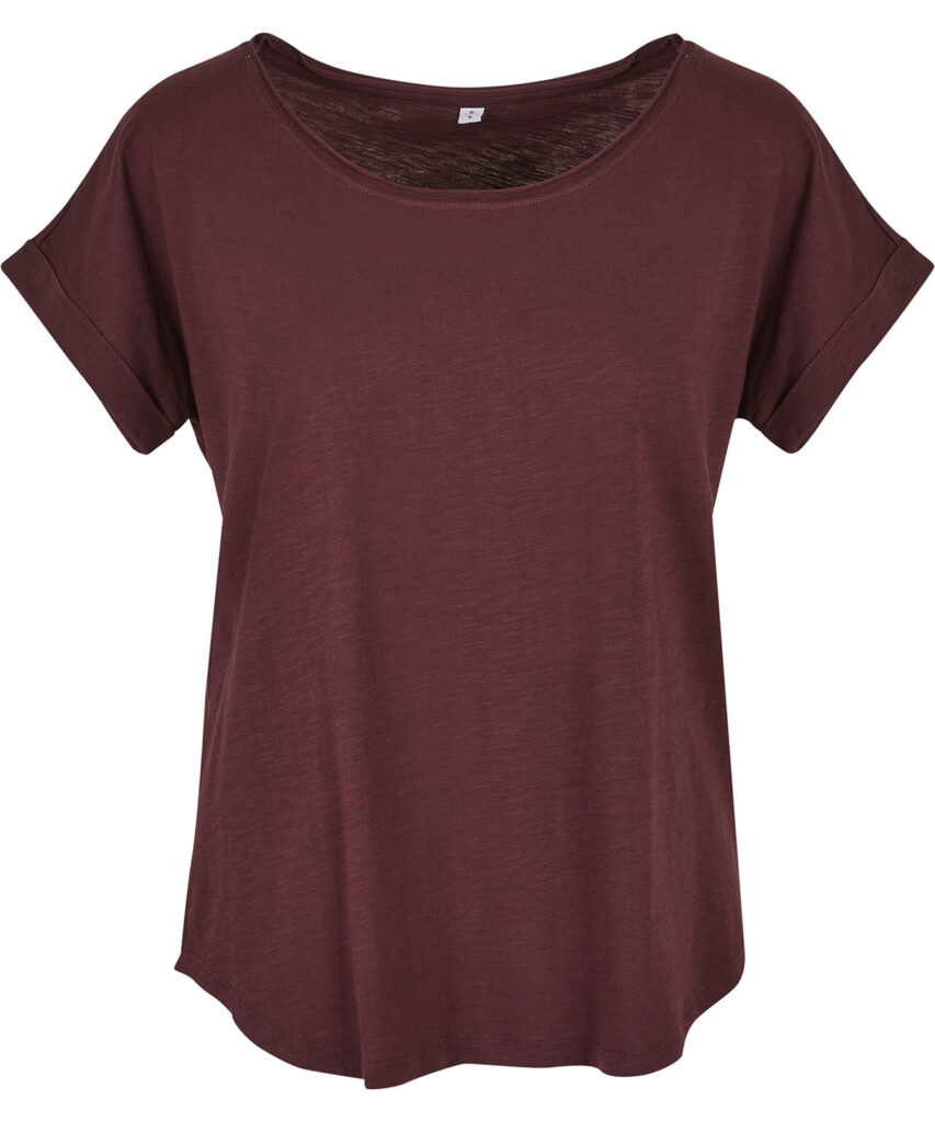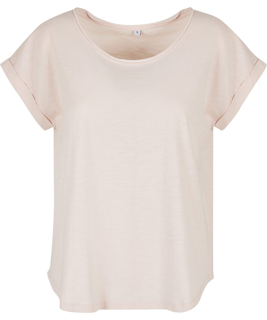With its oversized sleeves, rounded hem and slightly elongated back, the Women’s long slub tee has the classic long tee style. The wide neckline and light single jersey fabric give it a very feminine look. Ideally suited for embellishing with printing.