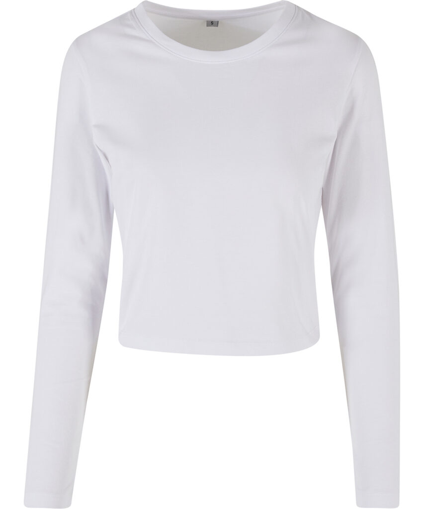 The easy-going womens long sleeve is cropped, with a crew neck, and offers all the ingredients of a classic fashion staple. In a regular fit, the fabric is a supple mix of cotton and elastane, which can further be refined with print or branding/motifs via screen or flex printing.