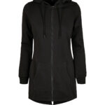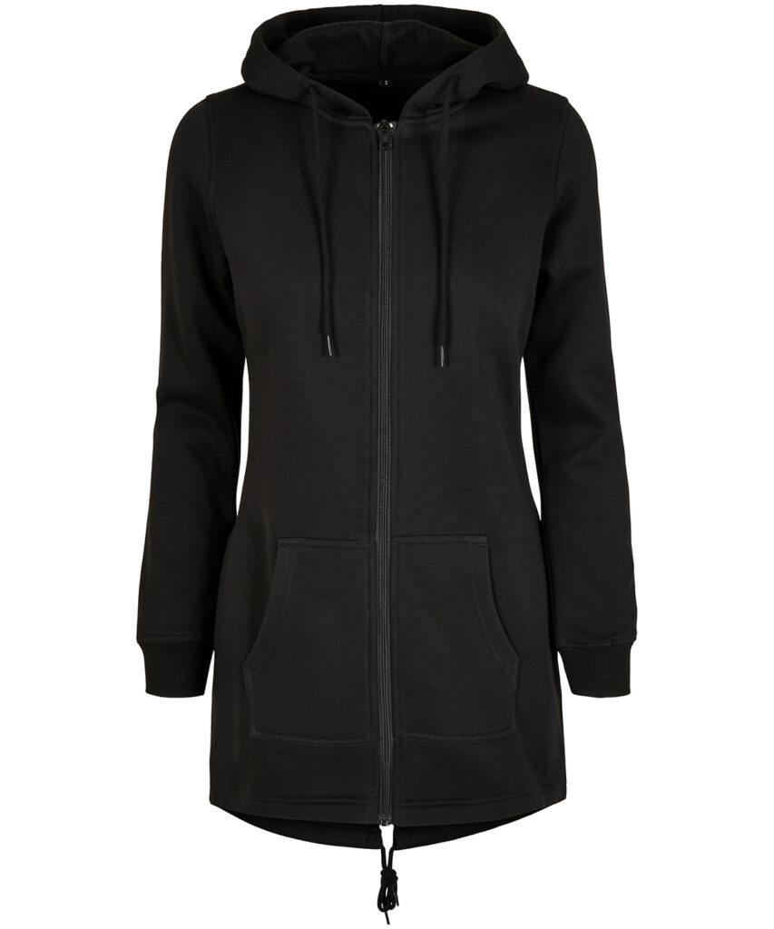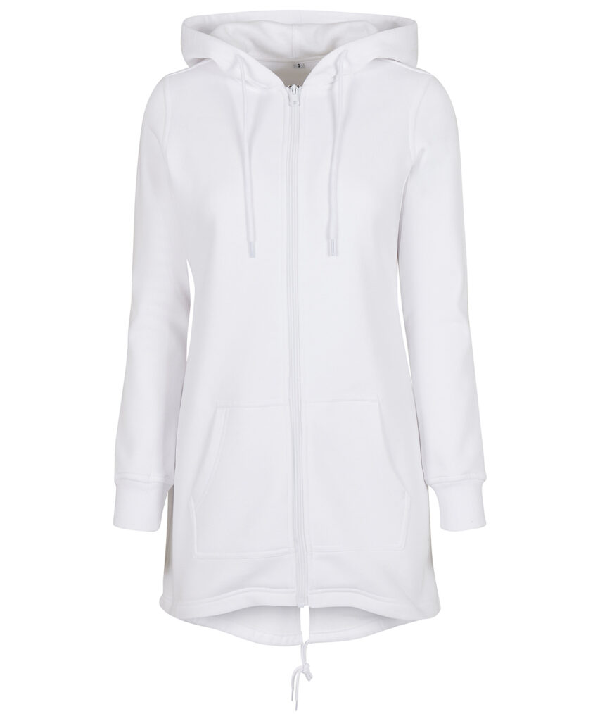 Comfortable basic zip-hoody for women in the style of a parka with extended back and hood. Great fit thanks to the drawstring hem and ribbed cuffs. The half-moon at the back neckline can easily be refined individually. This item is manufactured in a FAMA Certified factory. FAMA stands for Facility and Merchandise Authorisation and is a high standard production certificate. . FAMA certified.