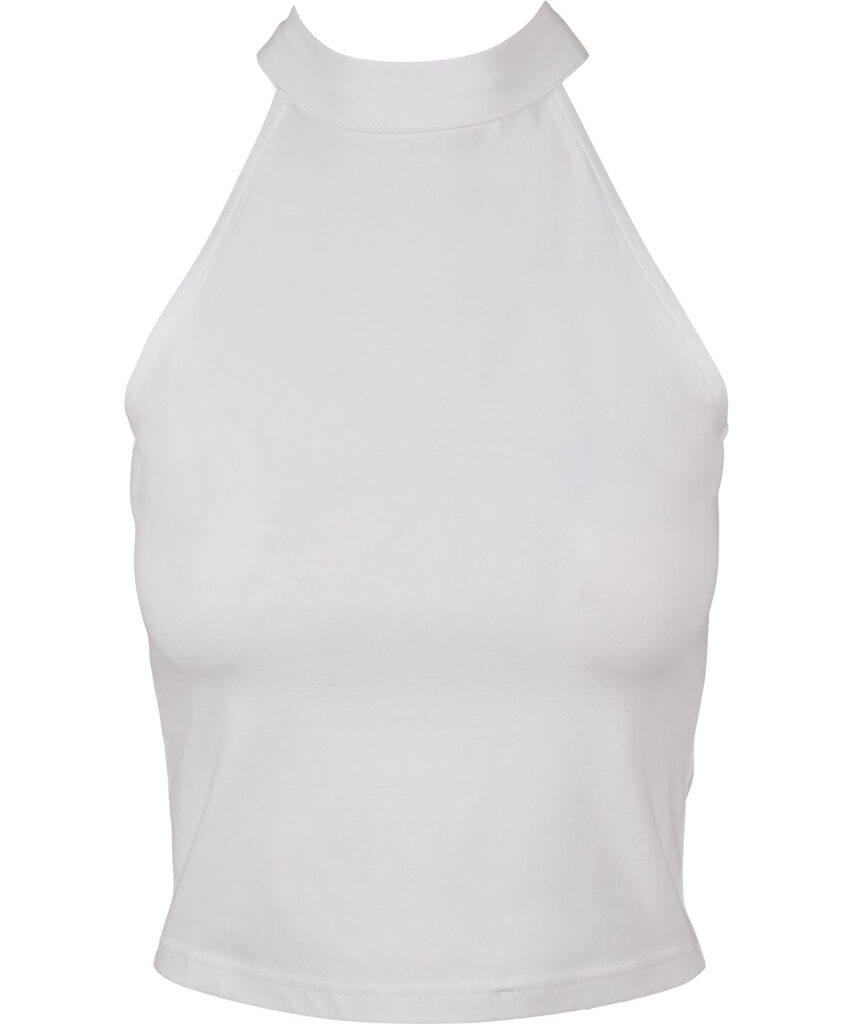 An exciting, sporty top that offers modern fit and high wearing comfort, thanks to the employed cotton-stretch material. Front and back are joined together by a light and sexy turtle neck, while the shoulders remain free, thus creating a wonderful look. Furthermore, the stylish short top is ready for further enhancement via flex or silk printing or by embroidery, if wished for.