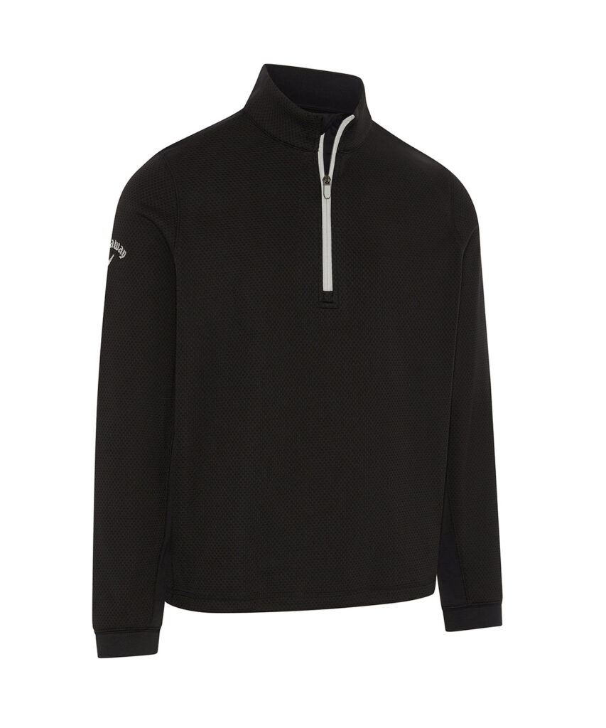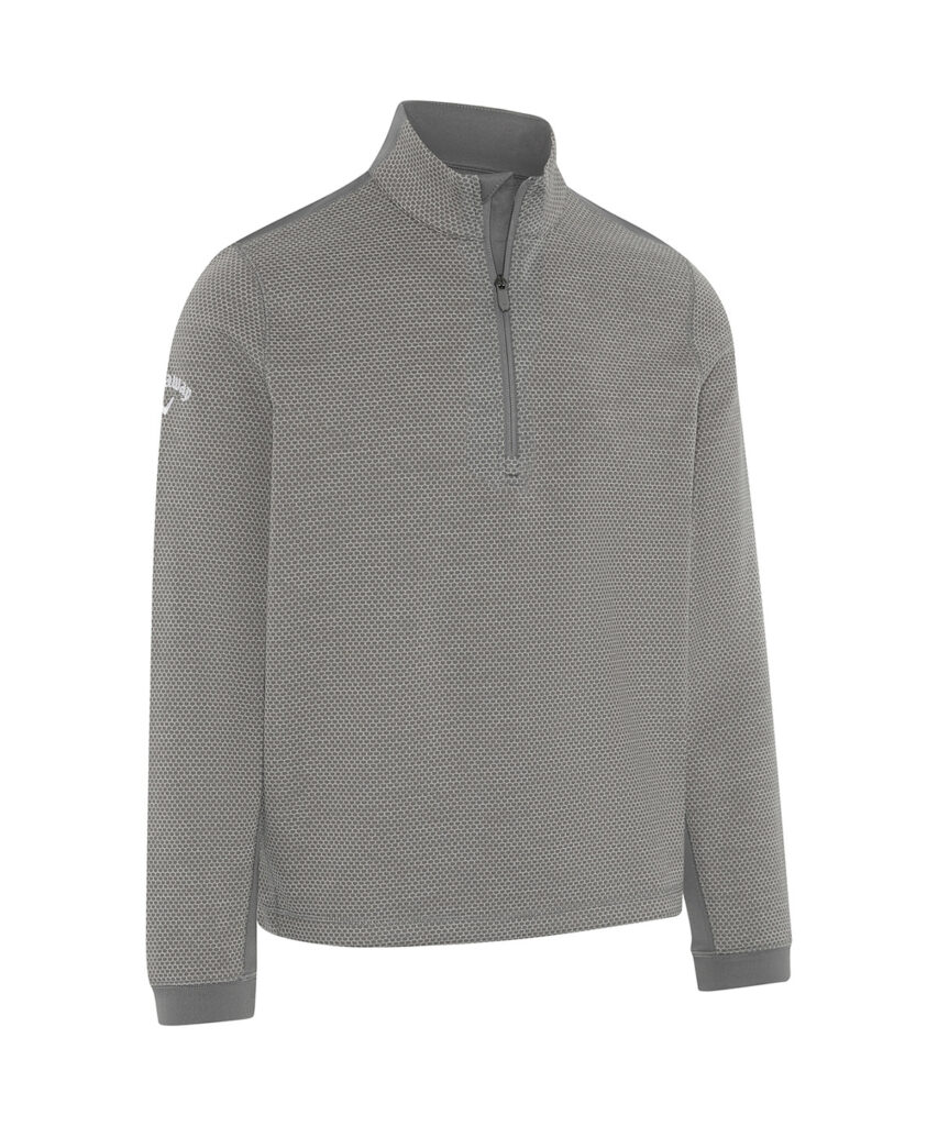 Hex-patterned 1/4-zip fleece with an adjustable drawstring hem, plus Callaway Tour logo on the right sleeve. OPTI-DRI transfers moisture away from your body to keep you cool and dry.