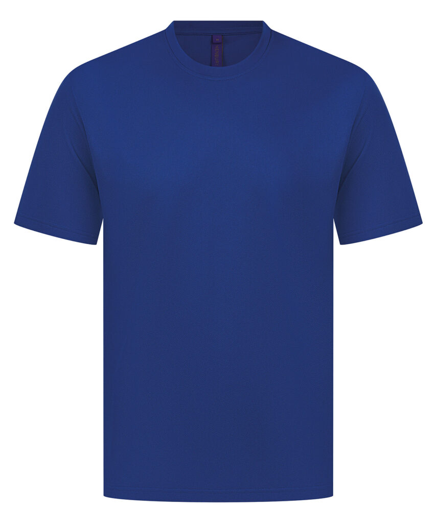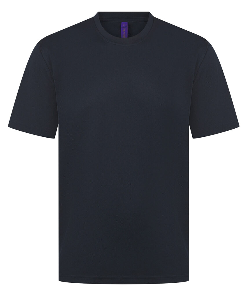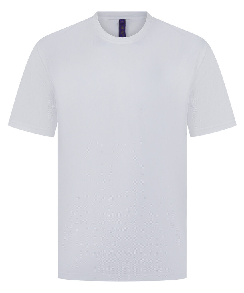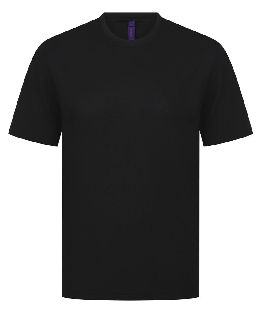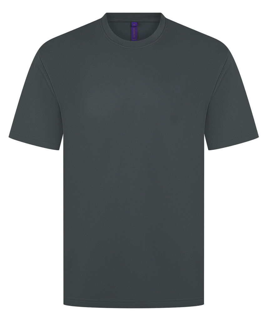 Unisex t-shirt made with best-selling 100% Coolplus permanent wicking fabric. Easycare properties. Regular fit. Ribbed collar. Twin-needle-stitched cuffs and hem. Side vents. Henbury cut-out label. Part of the Coolplus collection.