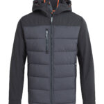 Part-recycled polyester elastane softshell with microfleece back and H2OShield DWR finish to upper body and hood. Part-recycled polyester ripstop to front and back body with H2OShield DWR finish, recycled polyester hollowfibre fill and recycled zip tapes. GRS certified fabrics, ETI factories, REACH compliant.