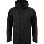 Top-notch longer length unisex jacket thats ideal for braving the wet weather. The AquaDry membrane construction has an EcoShield DWR finish, grown-on hood and 6 pockets, including 2 bellowed stud-fastening lower with fused flaps and zipped side handwarmers.