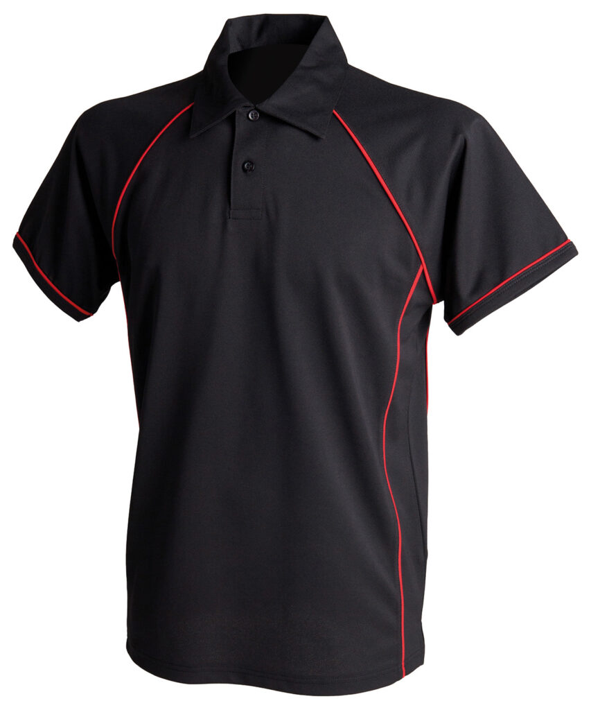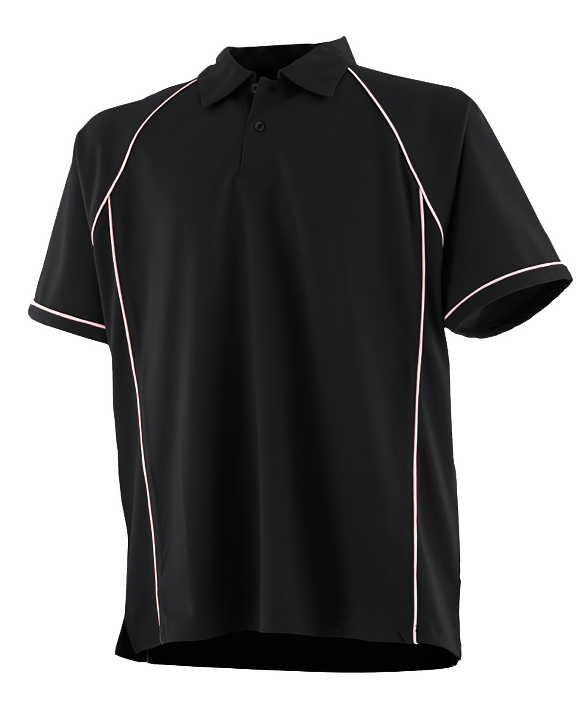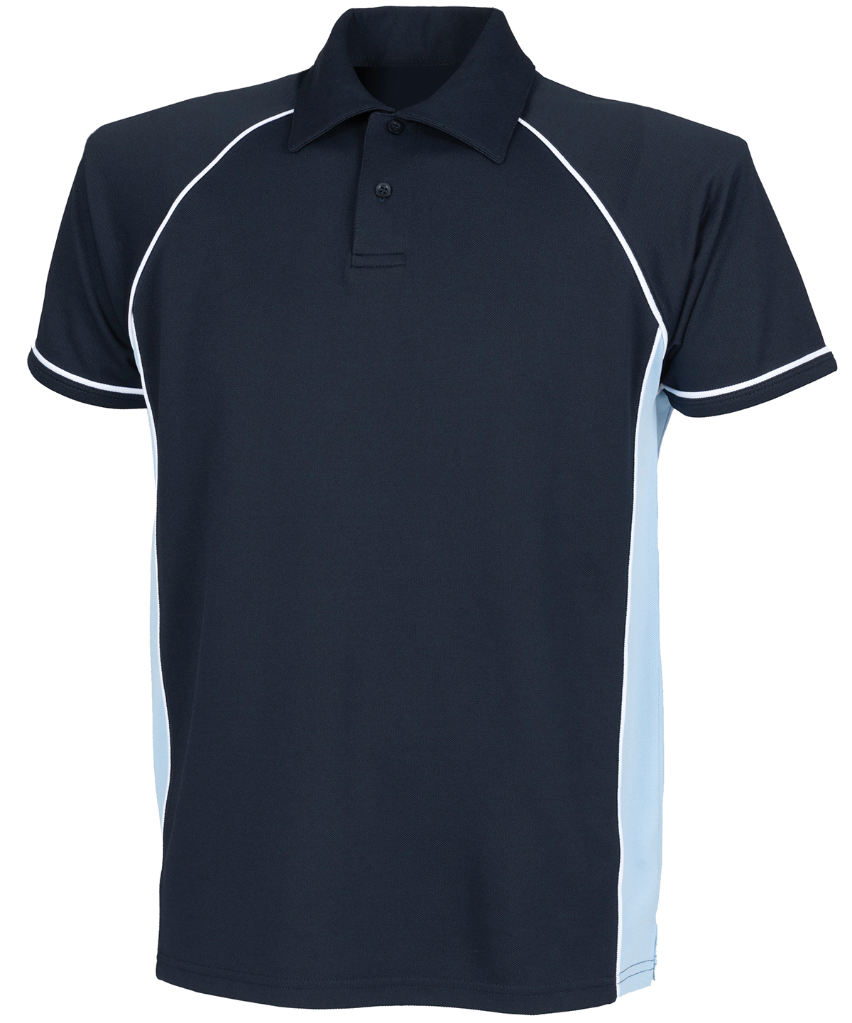Coolplus specially modified polyester fibres enable rapid absorption of sweat from skin surface. Contrast white piping along raglan seams and down front and back. 2 button placket, self-fabric collar. Oeko-Tex certified. SEDEX certified. WRAP certified.