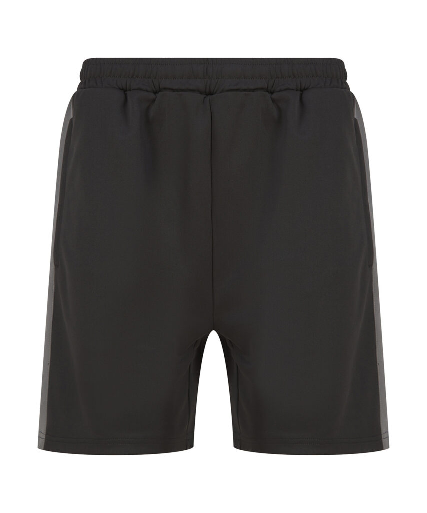 Shorts with elasticated waist and inner drawcords. Contrast side panels. Zipped side seam pockets. Twin-needle stitched hem.