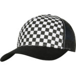 Checkerboard retro trucker cap. Hip checkerboard pattern. Checkerboard print on the front, airy mesh on the back. Integrated snapback closure for easy size adjustment. BSCI certified. WRAP certified.
