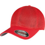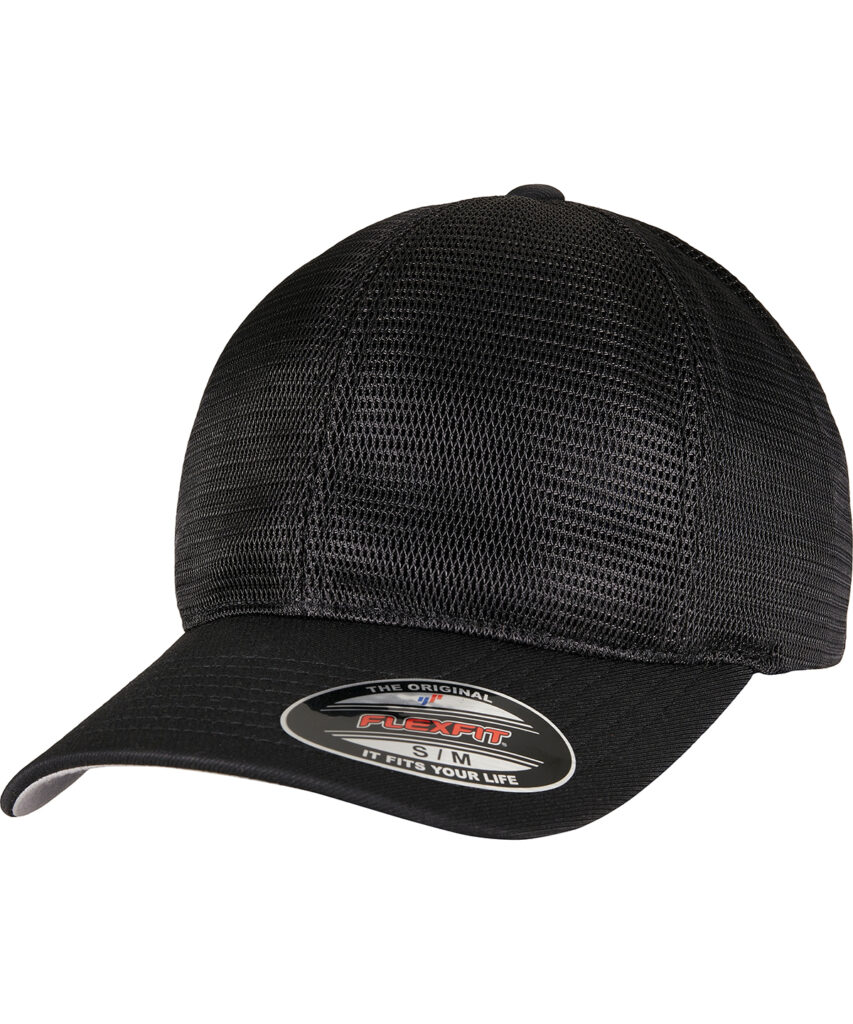 A masculine cap that offers its wearer fine material, fit and look. It is entirely made of breathable mesh. The polyester material and small amount of elastane ensures heavenly wearing comfort. Furthermore, the smooth fit of the cap is being maximized by its integrated Flexfit technology. It comes as a one size fits all and without the need for an extra closure. The opaque pre-bent visor with its eightfold decorative stitching ensures urban style.