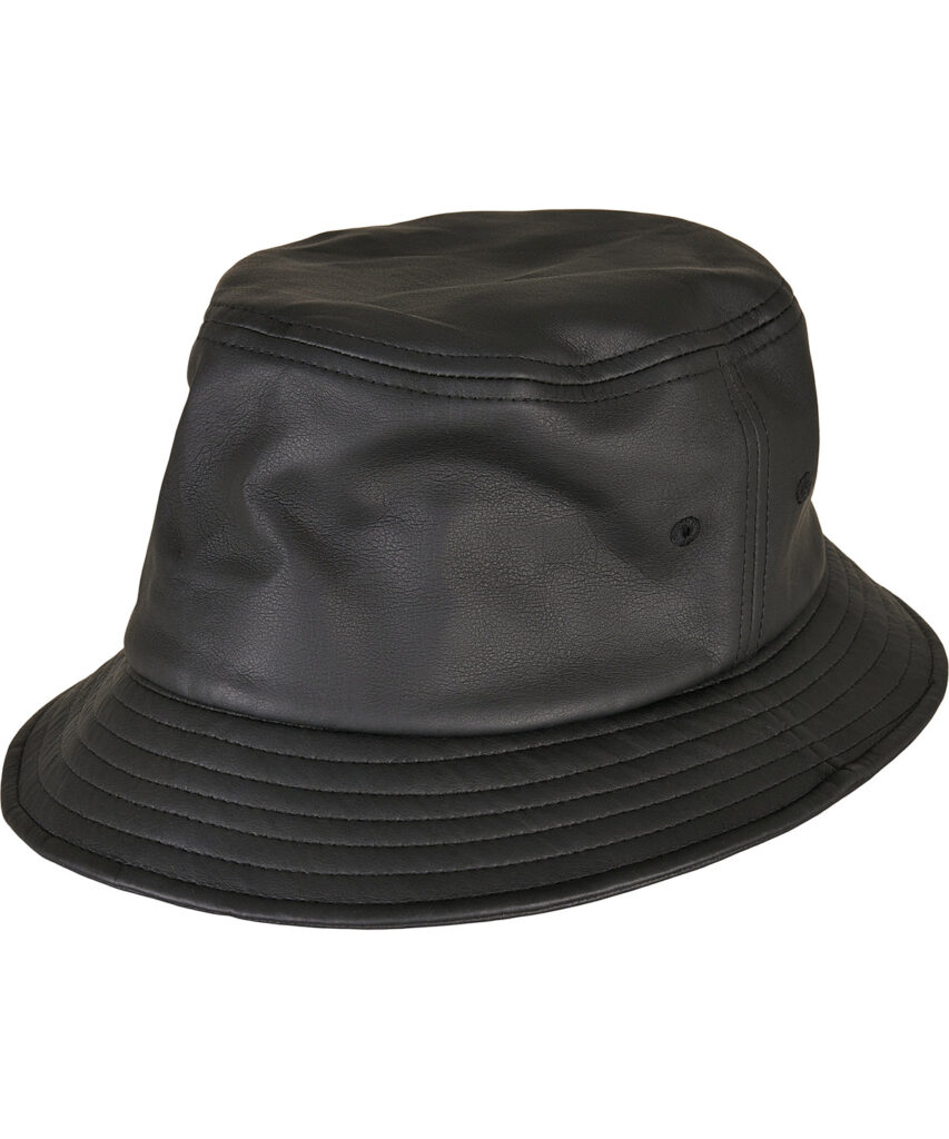 Equipped with a slanting, quilted brim, creasability and ventilation eyelets, this defines the classic bucket hat. Faux leather creates a desirable streetwear item with a unique look. Made from polyurethane, one size fits all.