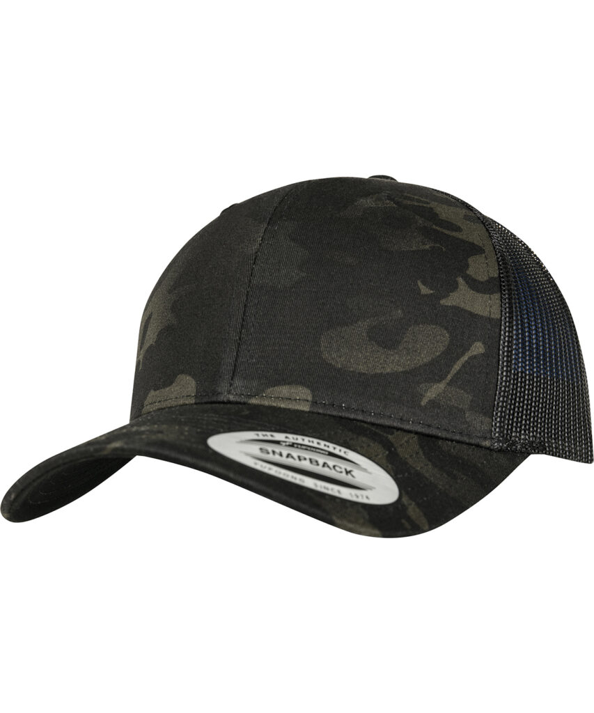 Retro trucker Multicam cap. Casual camo print in combination with soft but durable mesh. Integrated snapback closure. BSCI certified. WRAP certified.