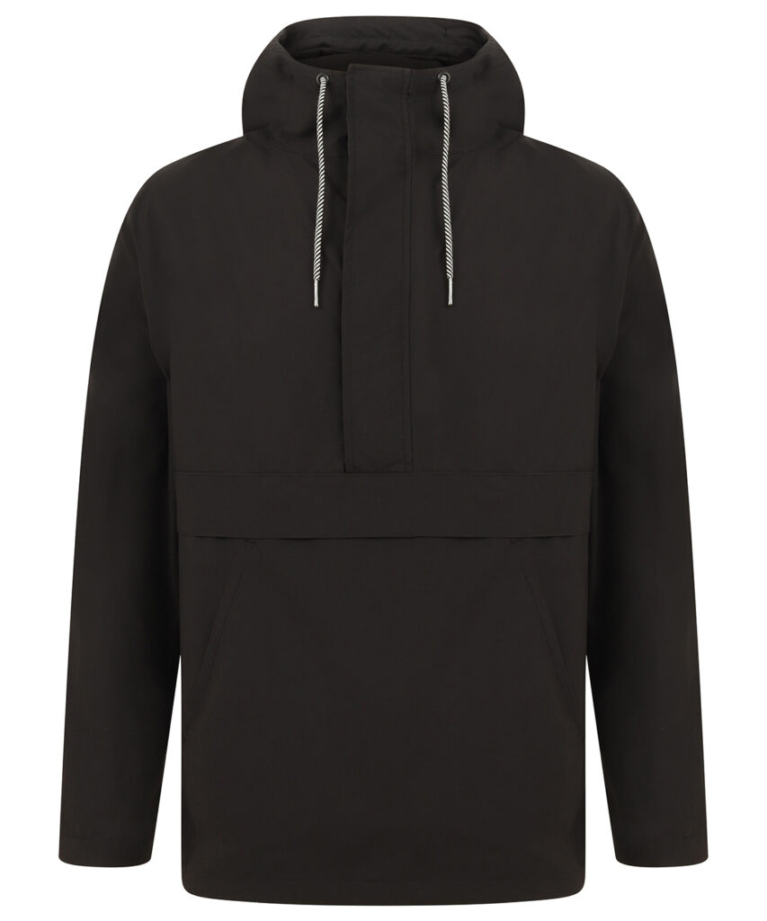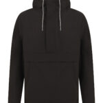 Hooded pullover jacket. Regular fit. Chest panel, front and back. Showerproof fabric, with mesh lining. Part-elasticated cuffs. 3-piece hood. Functional contrast lace drawcords around hood. Coated metal eyelets at hood opening. Centre front half- zip opening. Textured zip puller, with cord. Self-fabric storm flap, with hook and loop fastening. Elasticated cord through inside hem, with plastic toggles. Side-seam zip-opening, left hand side as worn. Large kangaroo style pockets. Inside patch pocket (with hook and loop fastening). Internal embroidery access. Back neck hanging loop.
