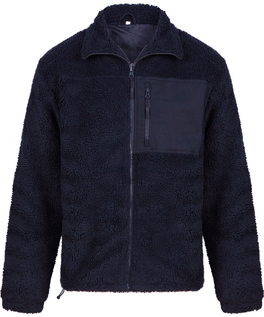 Zip-through fleece jacket, regular fit. Lined with embroidery access. Contrast funnel collar, fleece inner. Flatlock-stitched contrast panels 100% cotton twill. Front chest pocket with zip. Welt side pockets with popper fastening. Elasticated cuffs. Curved hem with elasticated cord. Tag-free for easy rebranding. BSCI certified. Oeko-Tex certified. SEDEX certified.