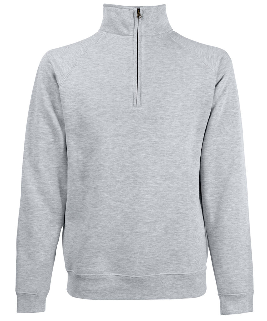 Available in a selection of colours with a covered metal zip for enhanced printability, the classic zip neck sweat is ideal for all kinds of garment decoration. Details include a single Jersey back neck tape for comfort and cotton/Lycra waist and cuff ribs and a cadet collar for added warmth.