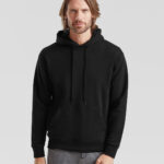 Ideal for work, tourism, event, leisure or casualwear, the Premium hooded sweat is available in a range of colours and features a 100% cotton face and double fabric hood. Details include a self-coloured flat drawcord and front kangaroo pocket, while a single Jersey back neck tape and cotton/elastane waist and cuff ribs provide easy movement and everyday comfort.