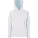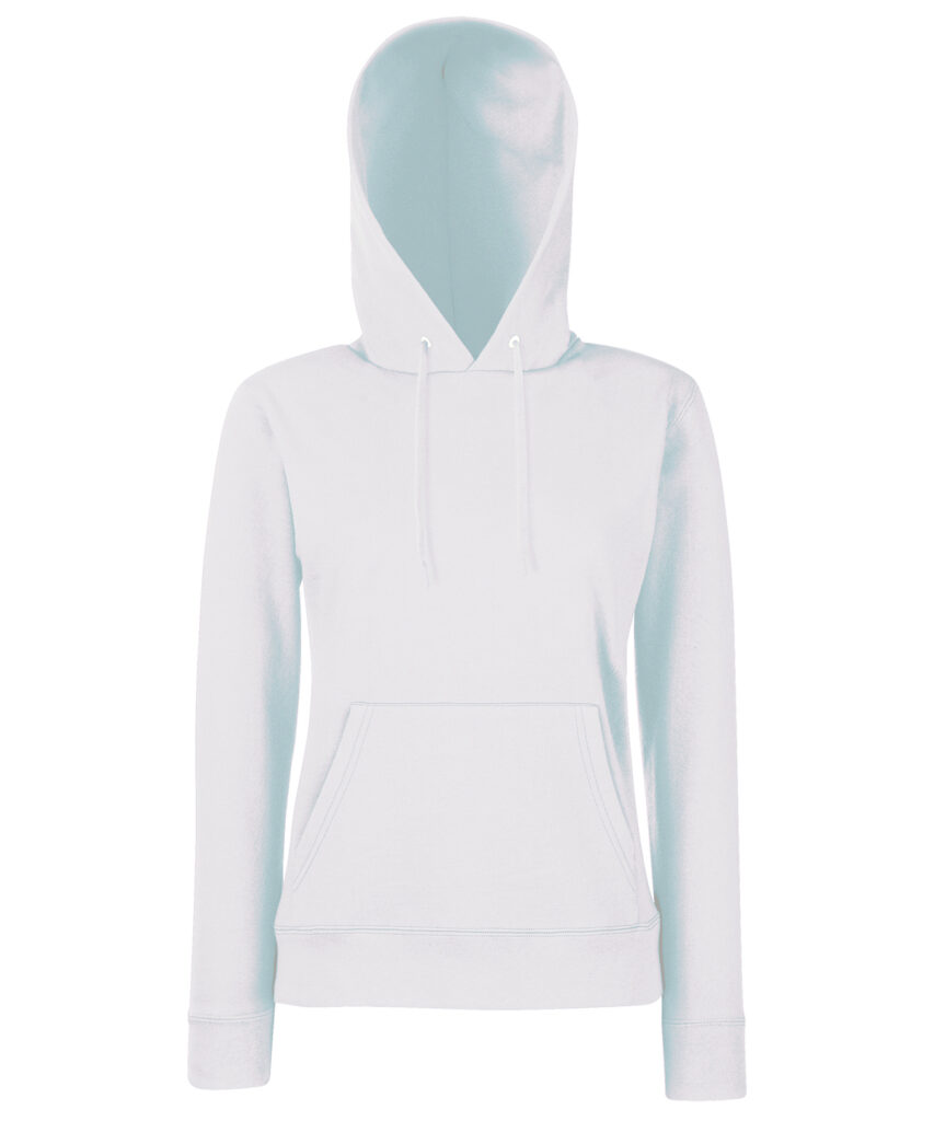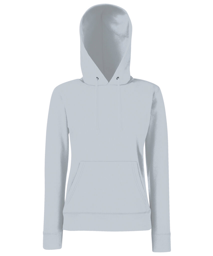 Made with a double fabric hood and shaped side seams for a feminine fit, the women’s classic hooded sweat is perfect for promotions, music merchandise, licensing, tourism and more. Details include a front kangaroo pocket and self-coloured flat drawcord and cotton/Lycra waist and cuff ribs for added warmth. This garment is available in a wide range of colours.