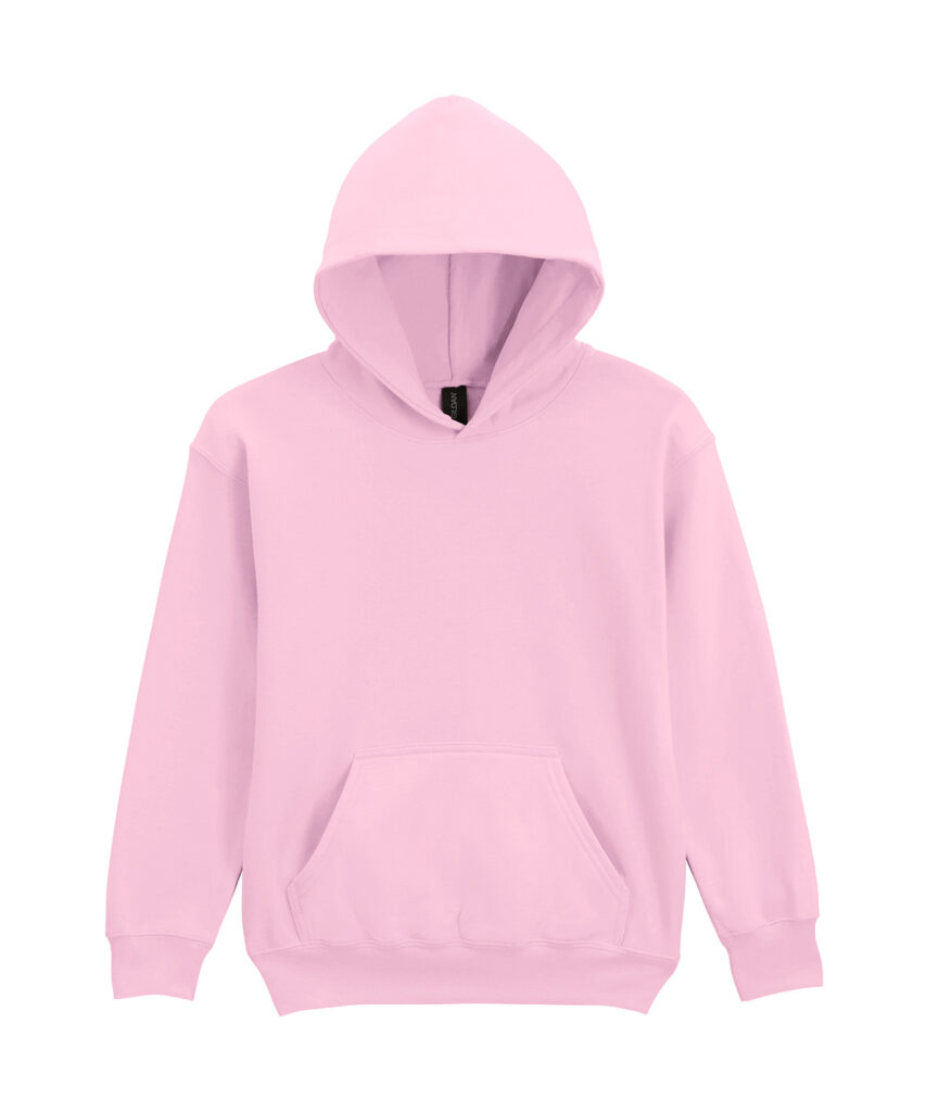 Made with a soft ringspun cotton blend, the Softstyle midweight fleece youth hoodie features a cosy, brushed interior with a 100% cotton face, ideal for DTG printing. Two-end ringspun cotton-face fleece. Two-piece, colour-matched, Jersey fabric-lined hood, no drawcord. Dropped shoulder. Pouch pocket. 1×1 rib with elastene cuffs and bottom band for enhanced stretch and recovery. Classic fit, tubular body. High-performing black tear-away label. CPSIA label tracking compliant.