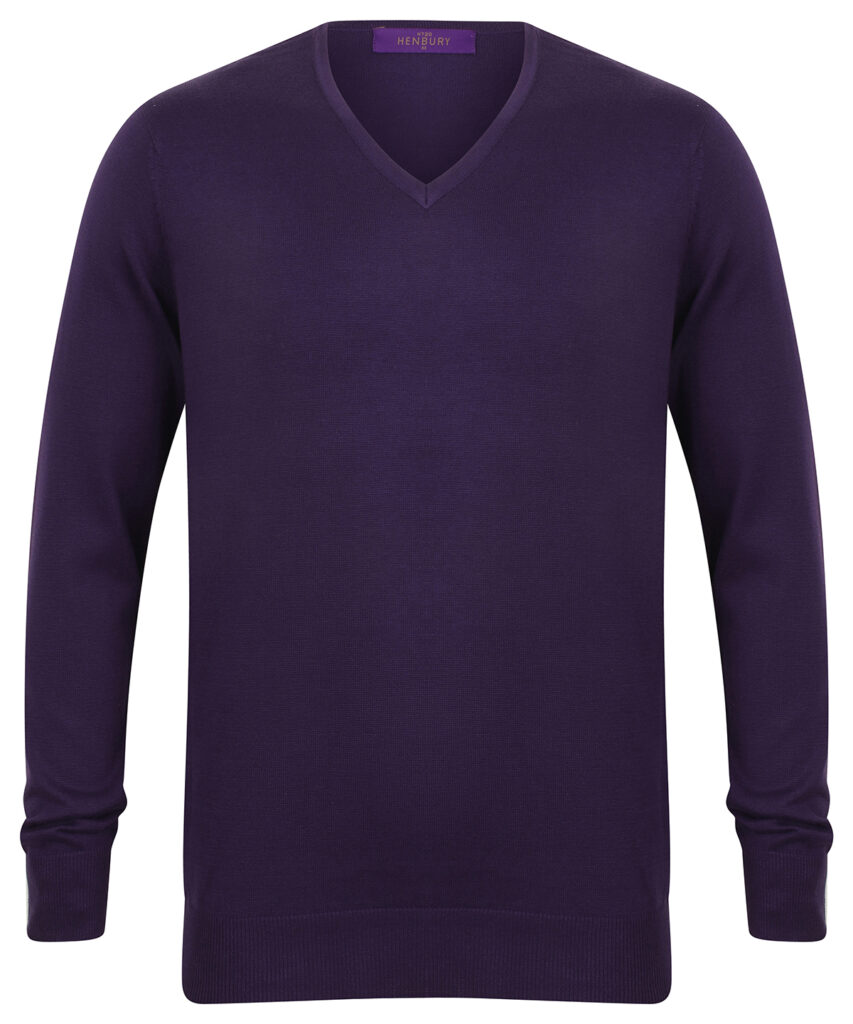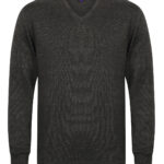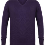 Fine knit 12 gauge v-neck jumper. Semi fashioned sleeve and neck detail. Set-in-sleeves. 1×1 rib and cuff. SEDEX certified. Oeko-Tex certified. BSCI certified.