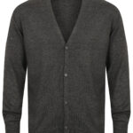 Fine knit 12 gauge. Semi fashioned sleeves and neck detail. Horn effect dyed to match buttons. 1 x 1 neck, and cuff rib. SEDEX certified. Oeko-Tex certified. BSCI certified.